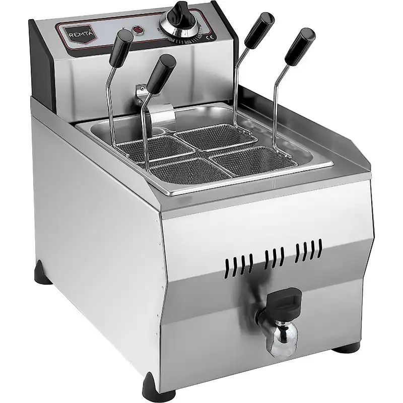 ماكينة باستا كوكر الكهربائية من ريمتا بسعة 8 لتر، مجهزة بنظام تحكم دقيق في درجة الحرارة لتقديم طهي متساوٍ ومحترف. تصميم عملي وسهل الاستخدام والتنظيف، مثالية للمطاعم والمطابخ التجارية التي تتطلب إعداد المكرونة بكفاءة وسرعة.